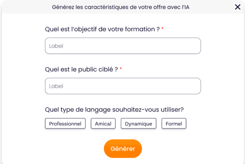 En quelques questions simples et en sélectionnant un type de langage, nous pouvions générer des descriptions, des mots-clés et tous les autres textes nécessaires pour assurer des offres de qualités. Toutes ces informations générées étaient modifiables par les Skillers.