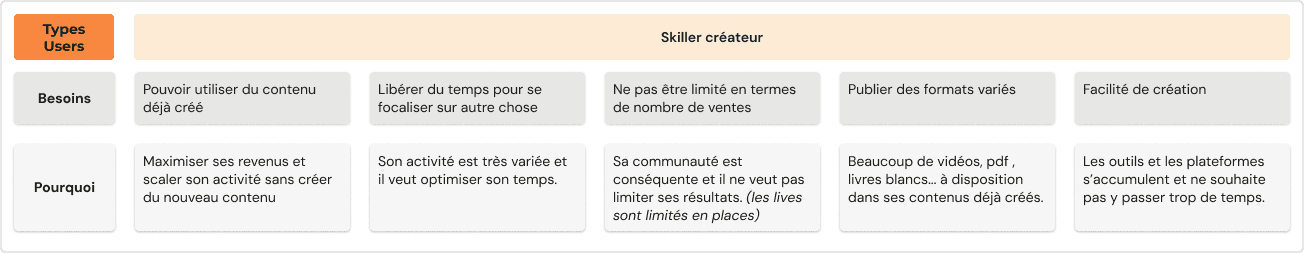 Avec l’ensemble des retours, voilà un résumé des attentes de ce type de Skiller.