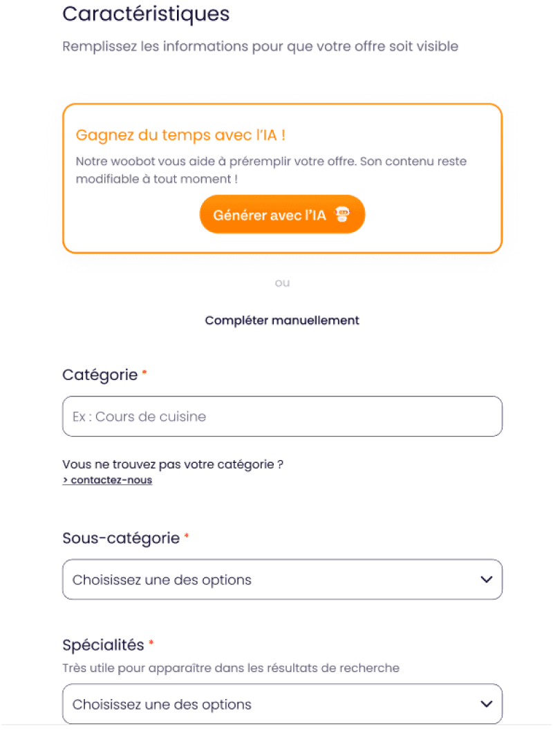 Pour que cette offre ait une page dédiée sur la marketplace il est nécessaire de remplir plusieurs champs.