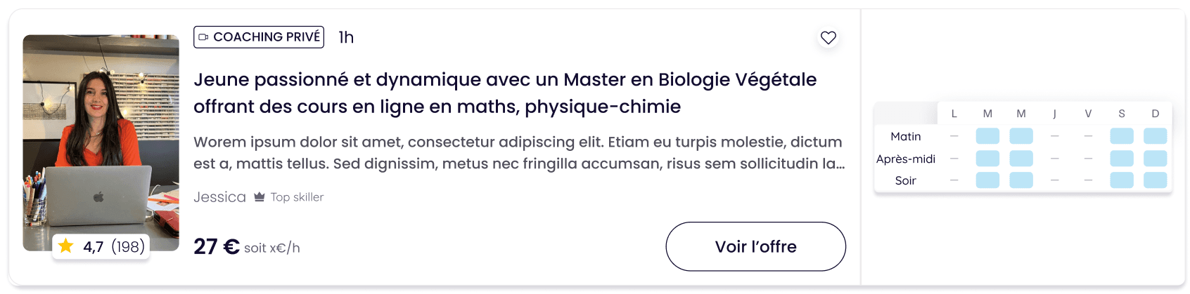 Objectif : donner tous les éléments nécessaires pour éviter à l’utilisateur de faire des allers-retours entre la recherche et les pages d’offres.