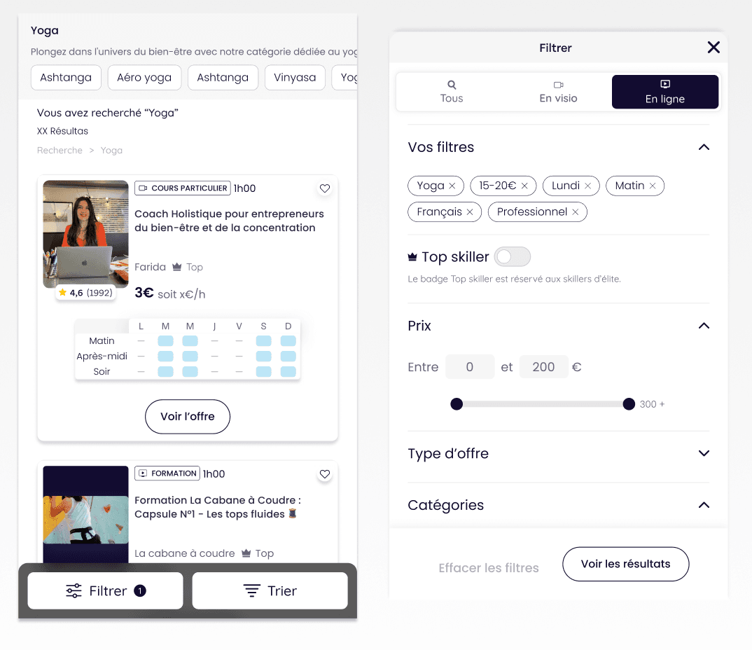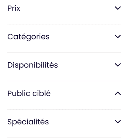 Tous les filtres sont dépliables pour donner un aperçu rapide et efficace, en fonction du format d'offre sélectionné certains filtres sont dépliés de base.