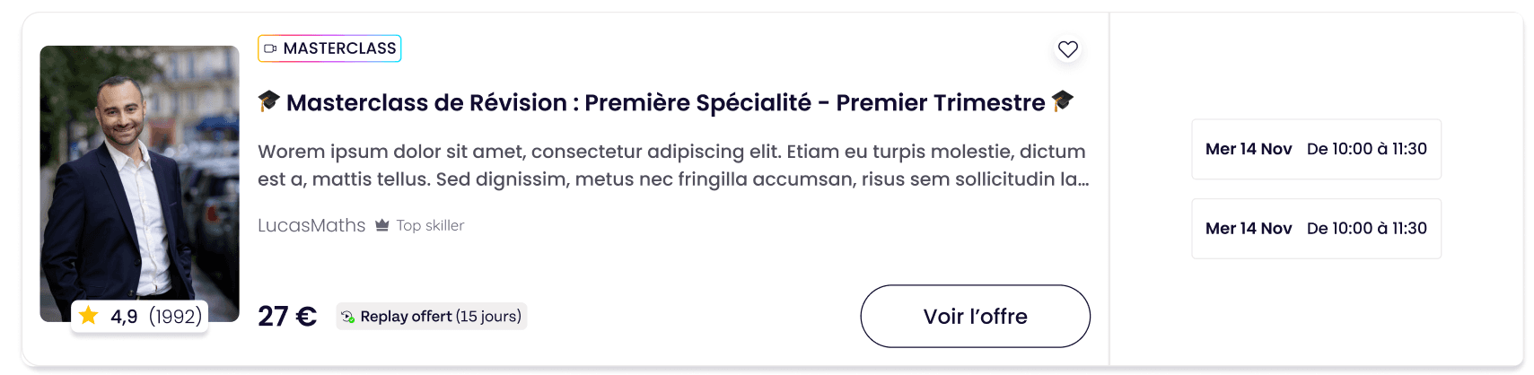 En desktop, la partie dédiée à l’info de l’offre est sur la gauche dans laquelle on ajoute un aperçu de la description de l’offre pour permettre à l’utilisateur de mieux se projeter, car le format desktop nous permet de passer plus d’informations qu'en mobile.