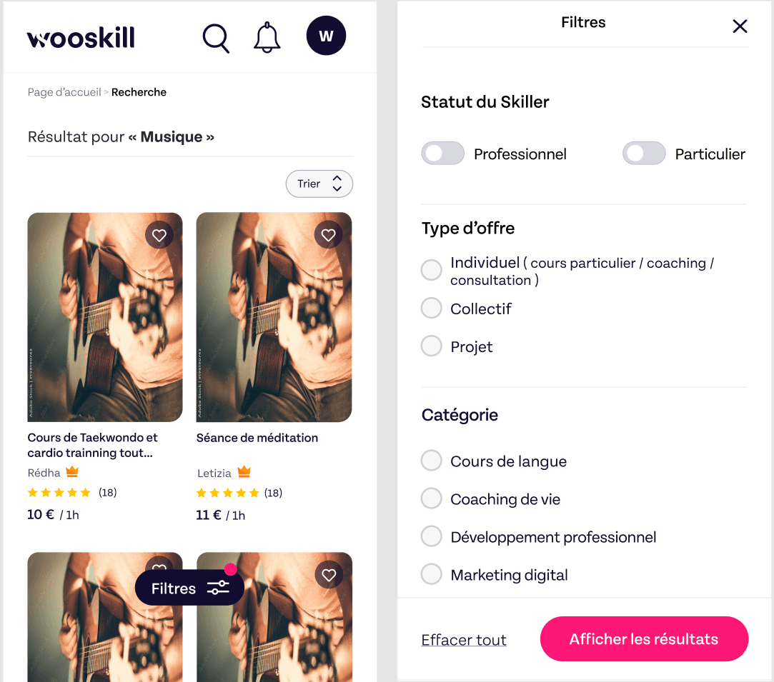 Pour faire un premier état des lieux, nous avons interrogé 5 utilisateurs de la plateforme ayant réalisé au moins une réservation dans les dernières semaines. La plupart d’entre eux avaient réalisé un cours individuel en visio avec l’un des “Skillers” de la plateforme.